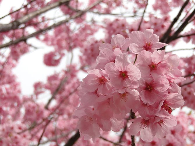 染井吉野がメインですが、濃いピンク色の陽光桜、穂咲彼岸八重桜という希少品種の桜が植えられ園内を彩ります。