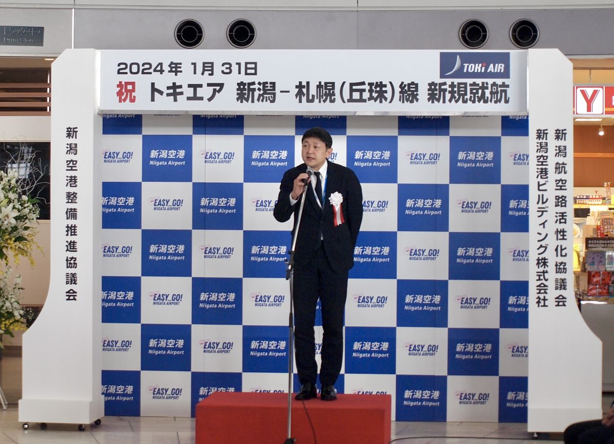 トキエア長谷川社長「安全運航が最大のサービス。気を引き締めて安全運航・平常運航対応をしていき、新潟の活性化に貢献していきたい」