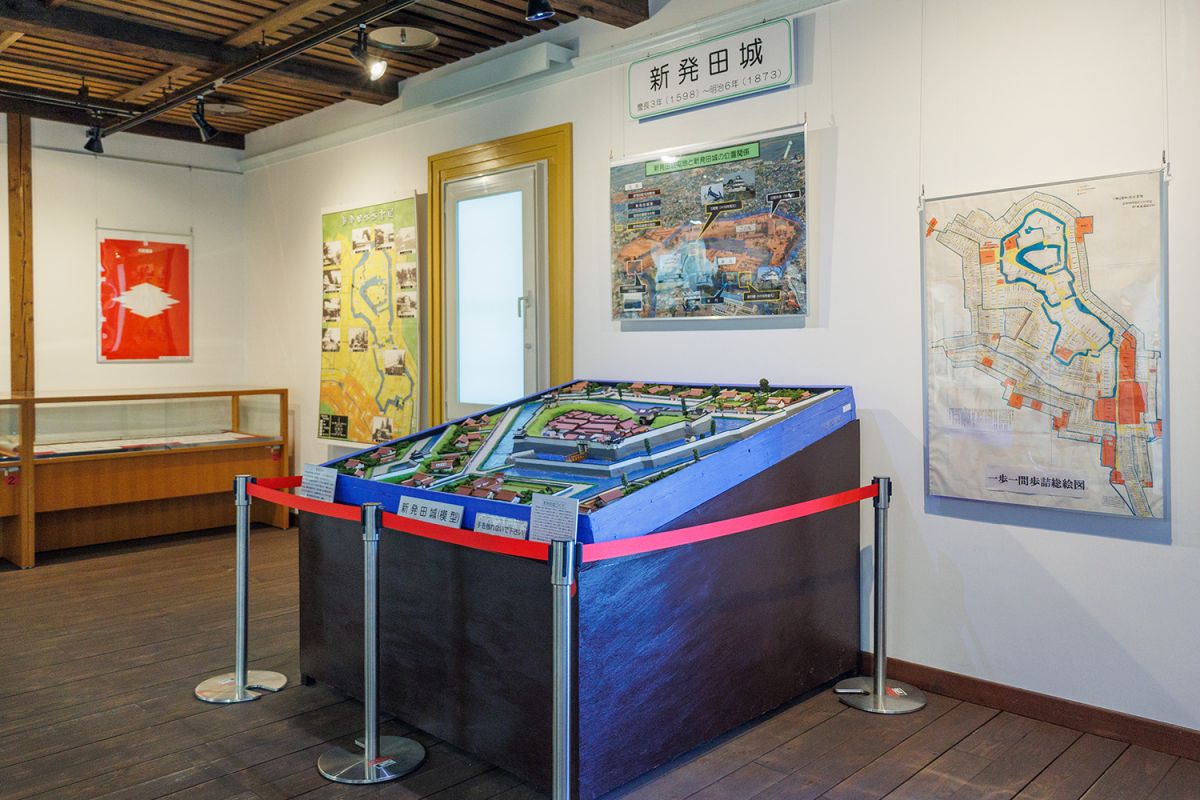 観覧は2階から1階という順序で、年代順に新発田城、白壁兵舎、日本陸軍、自衛隊と4つのコーナーがあります。まずは2階に上がり、右に曲がったところが最初の「新発田城コーナー」です。1874年(明治7)に、新発田城の城内に白壁兵舎が建築されたといういきさつもあり「土地の歴史に敬意を払って」そもそもの原点である新発田城や藩主などを紹介しています。