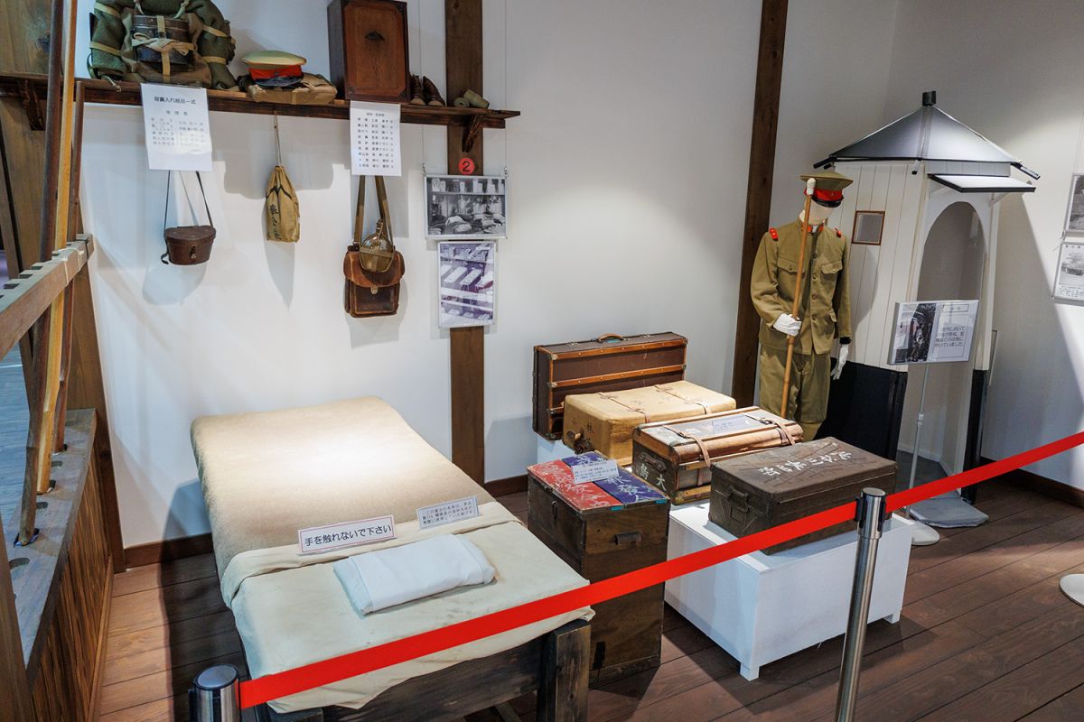 白壁兵舎が実際に宿舎としてどのように使われていたのか。そのときの様子が分かる展示もありました。1つの宿舎でおよそ200人程度の隊員が寝泊まりしていたそうです。