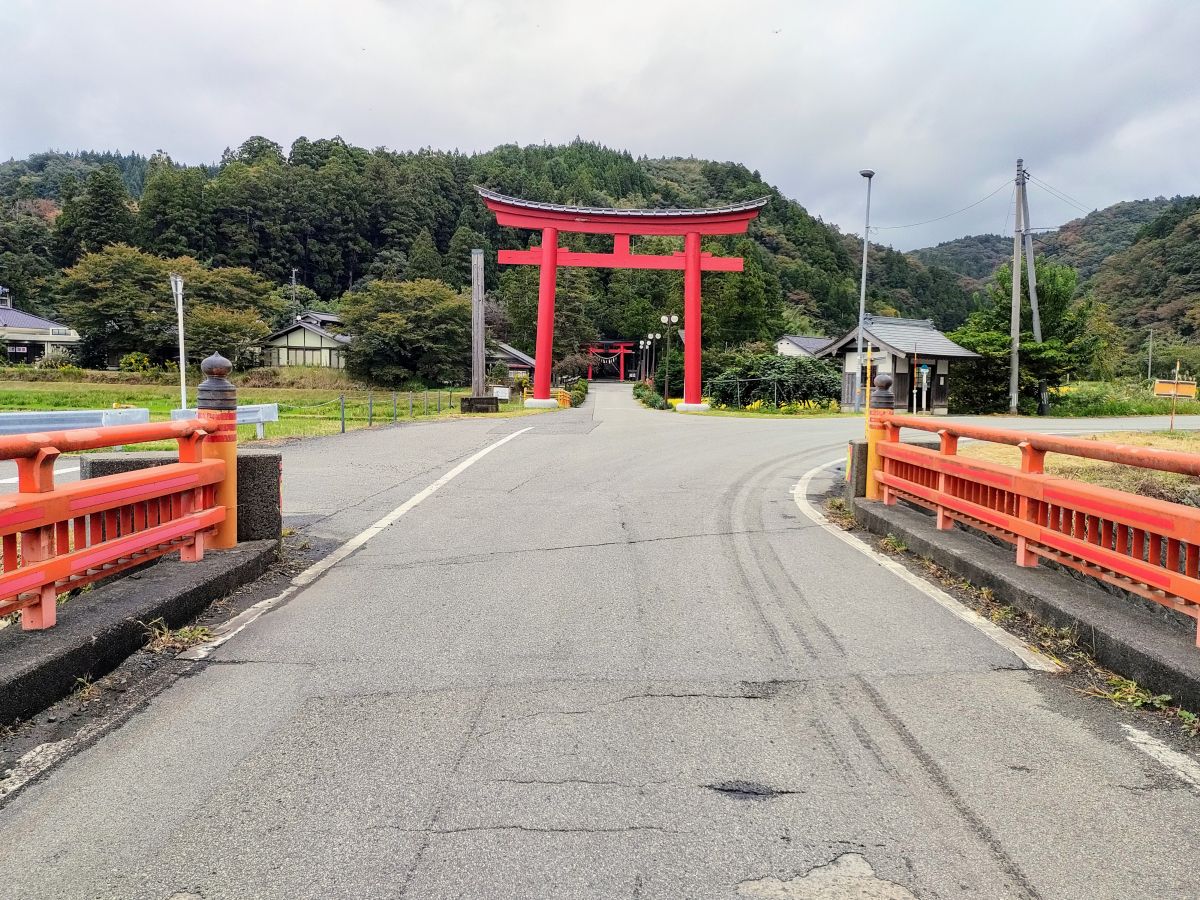 県道81号線が羽茂川を越えると、大きな鳥居が一の鳥居、二の鳥居と二つ待ち構えています。