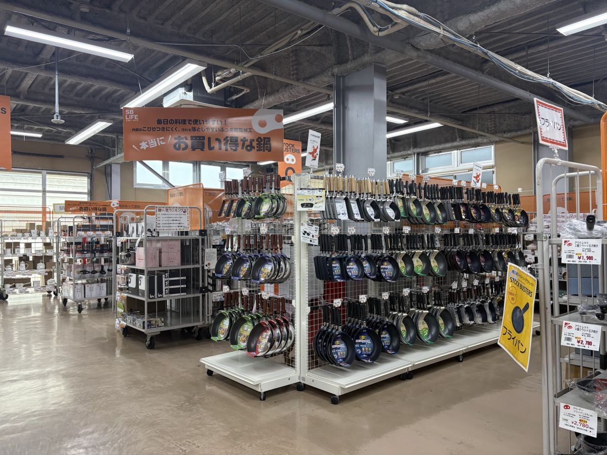 広〜い店内にはピーラーやスライサーなどの便利なキッチングッズや鍋、フライパン、カトラリーやタンブラー、包丁やハサミなどの刃物や園芸用品、日用品に至るまで、さまざまなアイテムが所狭しと並びます。