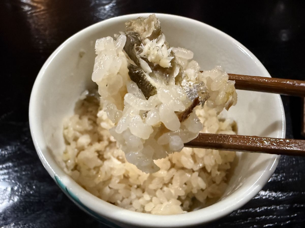 コースの締めくくりに登場したのは、丁寧に炊き上げられた「鮎ごはん」です。