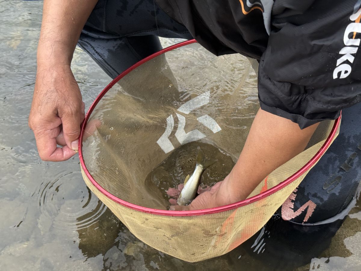 「今日は少し濁りが入っていて難しい日ですが、ポイントさえ押さえれば大丈夫。やってみましょう」