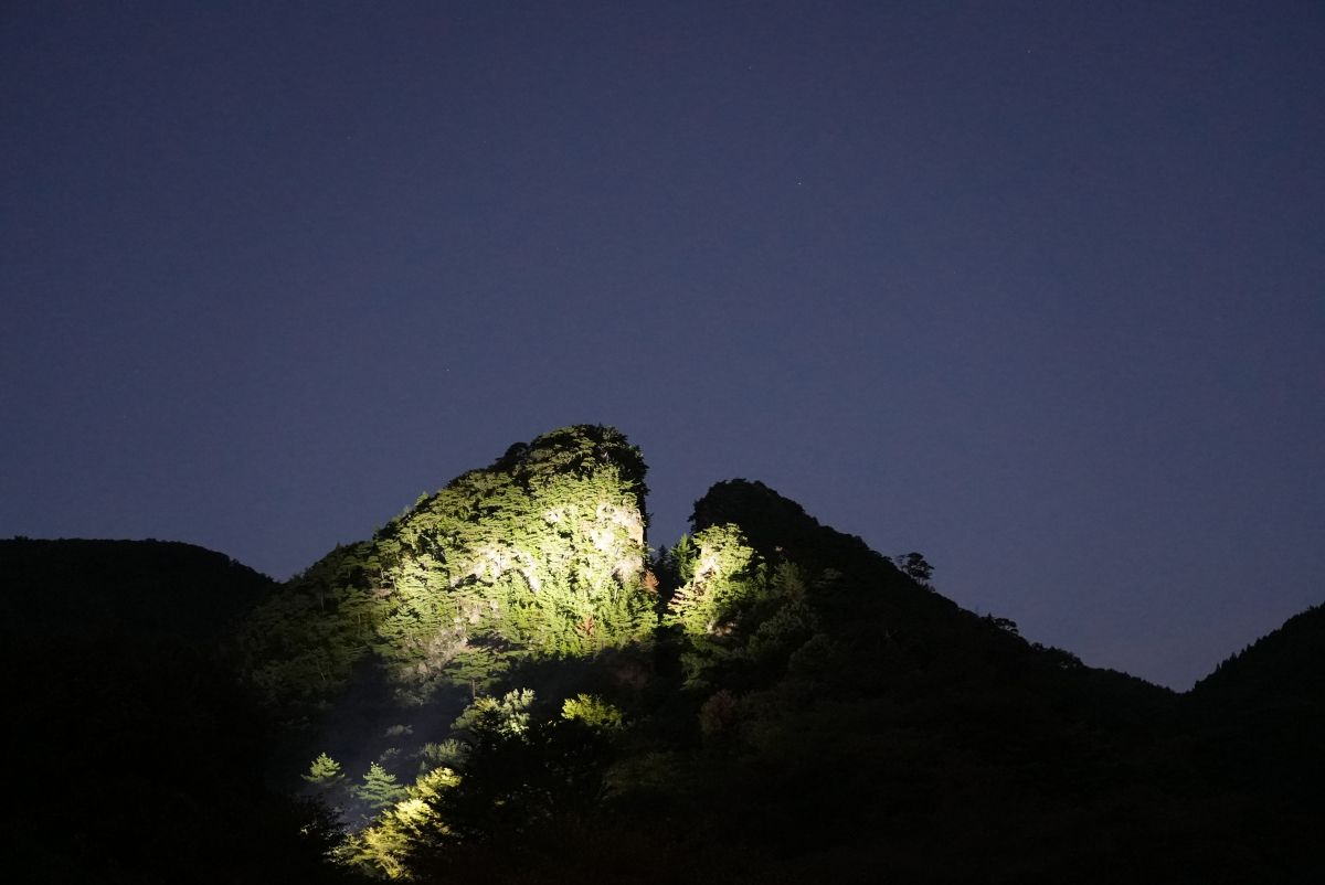 ”道遊の割戸”が光に照らされ昼間には見ることができない幻想的な姿を現す