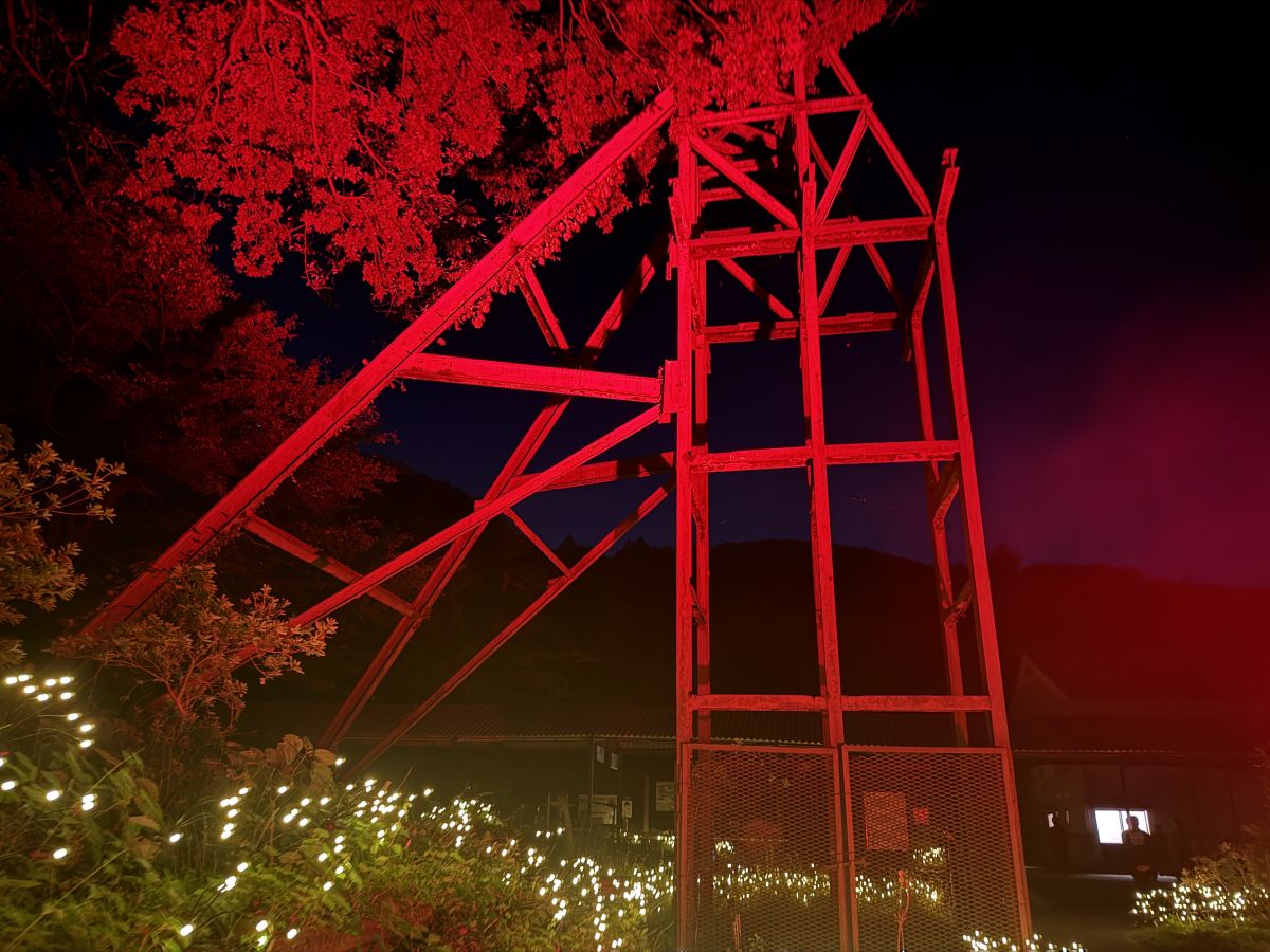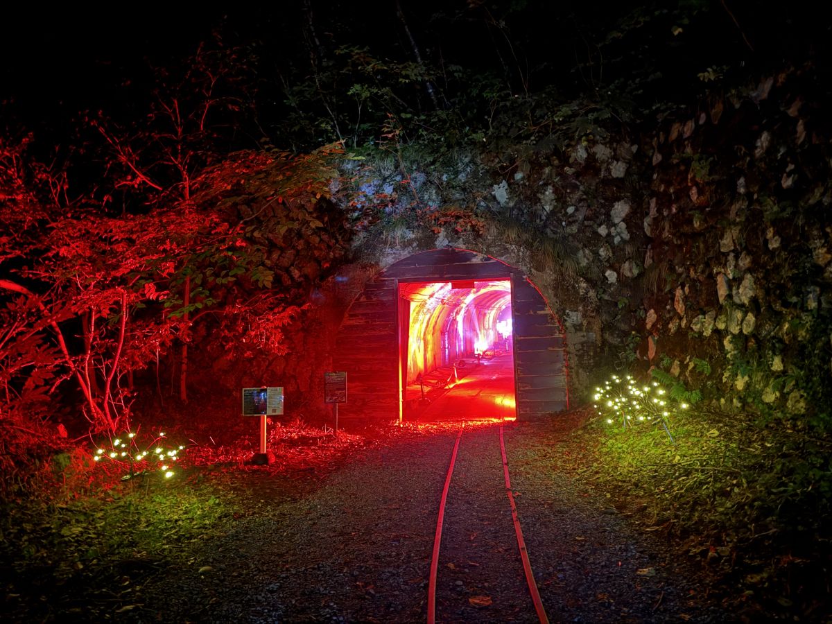 光の花畑を見終えて人影のない暗闇の坑道を歩くと、昼の観光では決して味わえない、世界遺産の“夜”の姿が広がります。