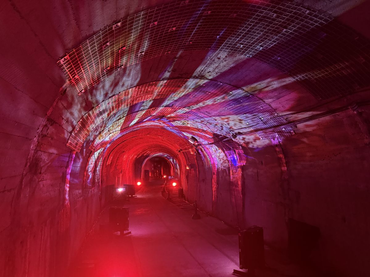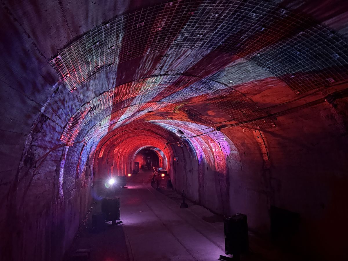 そこに現れたのは坑道の中を映し出す光。近未来を思わせるようなその光のマジックはなんとも幻想的です。