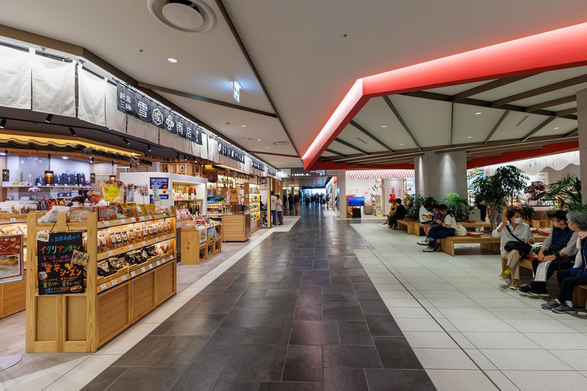 大阪市北区の旧大阪中央郵便局跡地に2024年オープンした商業施設「KITTE大阪」。JR大阪駅直結という好立地で、高層ビル「JPタワー大阪」の地下1階から地上6階に入っています。2階は「Feel JAPAN Journey(ええもん にっぽん めぐり)」フロアで、北海道から沖縄まで19のアンテナショップと、カフェを兼ねた特産品販売の店、計20店舗がずらりと並びます。その中のひとつが、上越ケーブルビジョンが手掛ける『新潟三昧 越の蔵 雪國商店』です。