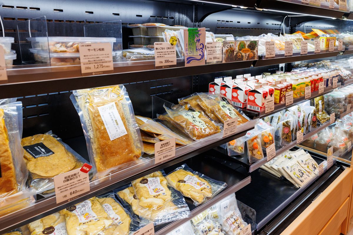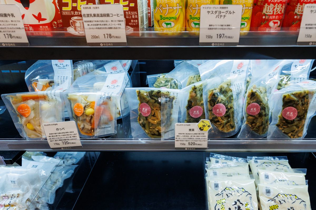 新潟県人にとってはおなじみの郷土料理「煮菜」「のっぺ」もありました。どんな料理か説明するPOPが添えてあり、のっぺは野菜と貝柱を一緒に煮込むことで互いの旨みが絡みあう一品で、寒いときは温製、暑い季節は冷製で、通年楽しめる料理、と紹介されていました。外からの視点で解説されると「あ、分かりやすい!」ということってありますよね。なおこちらの総菜の一部は角打ちコーナーのおつまみとしても提供されています。