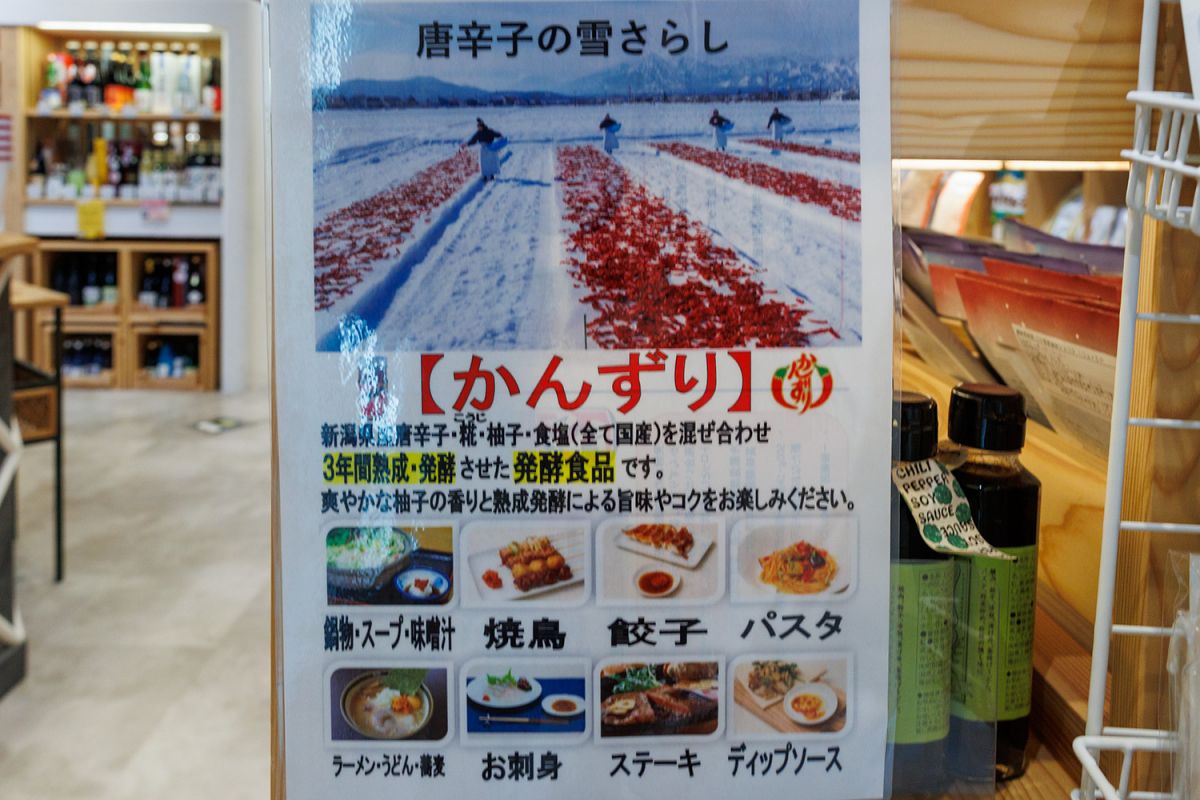 ご当地加工品の「かんずり」は唐辛子と麹、柚子などを混ぜ合わせ、3年という歳月をかけて作る発酵食品。唐辛子を雪さらしする写真を添えた小さなポスターを作ってPRしています。焼き鳥からラーメン、うどん、ステーキなど、幅広い料理に合うと紹介されていました。郡山さんは「雪室貯蔵、発酵、醸造など、商品を通して新潟に根ざした食文化を伝えていきたい」と語りました。