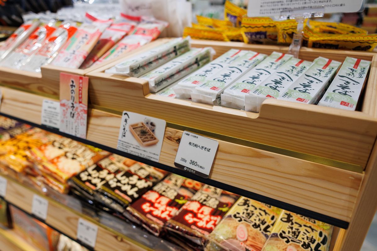 食文化といえば、海藻をつなぎに使って作る布海苔そばは、新潟独特のものですよね。他県の人にとってはめずらしいため「どれを買ったらいいのか」と相談を受けることも多いそうです。布海苔そばと一口に言っても、それぞれ微妙に味わいが違うもの。食べ比べをすすめたところ、数種類買い求める方もいたそうです。