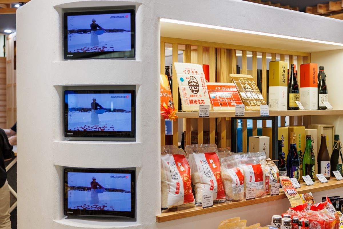 商品棚の一部にはモニターが設置してあり、上越ケーブルビジョンが制作した雪国の様子を伝える映像が流れています。自らの強みを生かして多角的に新潟をPRしていますね。