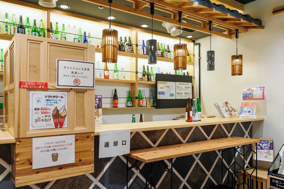 KITTE大阪という場所を選んだのは、まずは開業の翌年に大阪・関西万博が開催されること。そして北陸新幹線が福井県敦賀市まで開通し、関西地方から新潟がぐっと近くなることなど、いくつかの好条件が重なった結果でした。入店して驚いたのは品ぞろえの豊富さ。日本酒だけで150種類以上、全部でおよそ700種類以上の商品を扱っています。