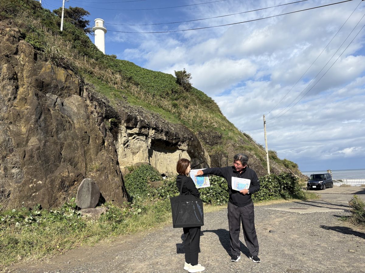 集合場所である新潟駅を出発し、向かったツアー最初の目的地は、雄大な日本海を一望できるビュースポットの角田岬。