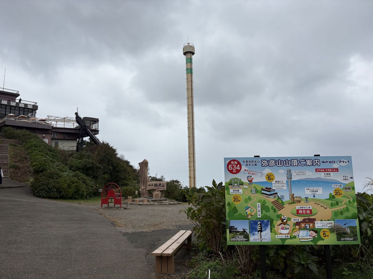 角田岬から越後七浦シーサイドラインを通って弥彦スカイラインを一気に駆け上がり、続いてやってきたのは弥彦山頂。