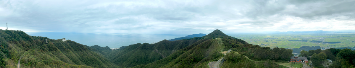 弥彦山頂パノラマタワーから海、山、平野を一望! ってこれ、新潟県ならではの眺めなんです