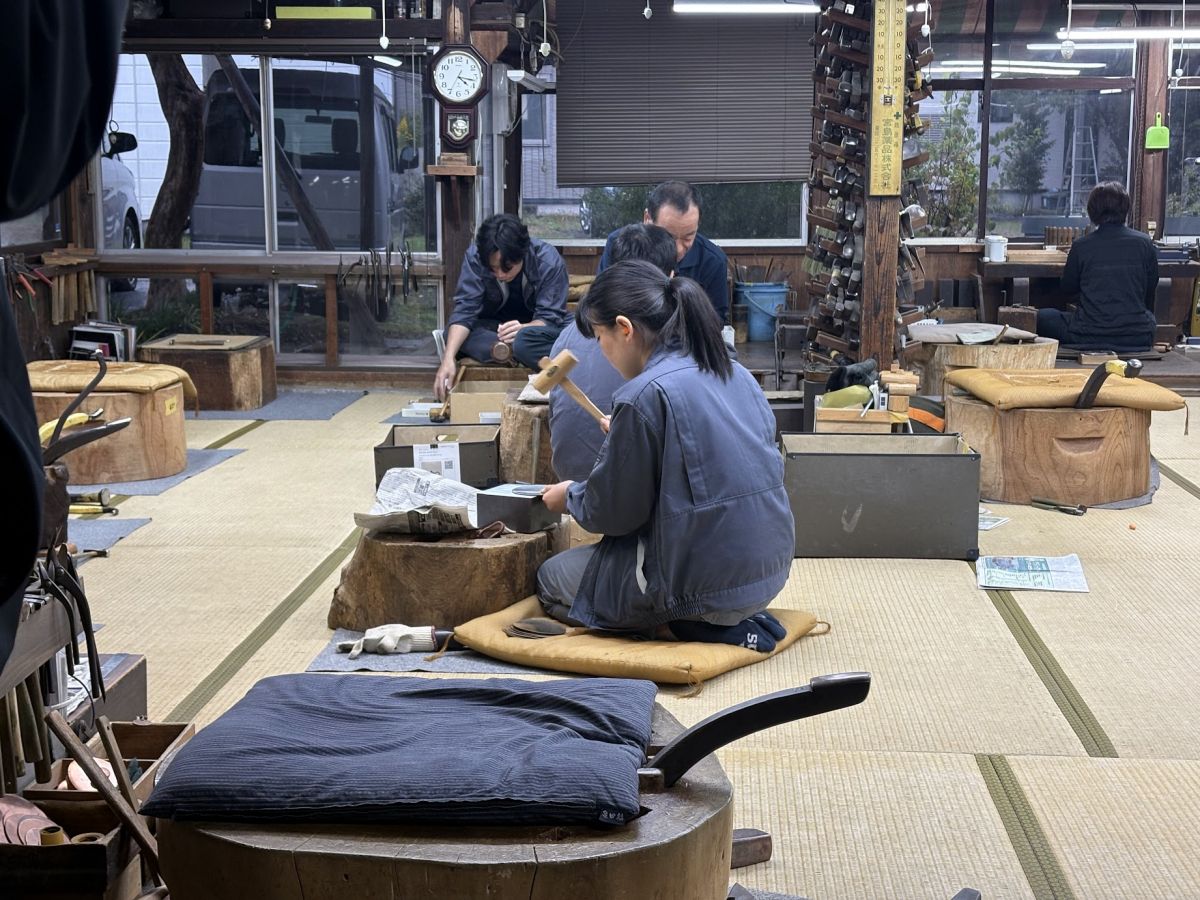 作業場に淡々と響く金鎚の音と黙々と作業に打ち込む職人の姿。