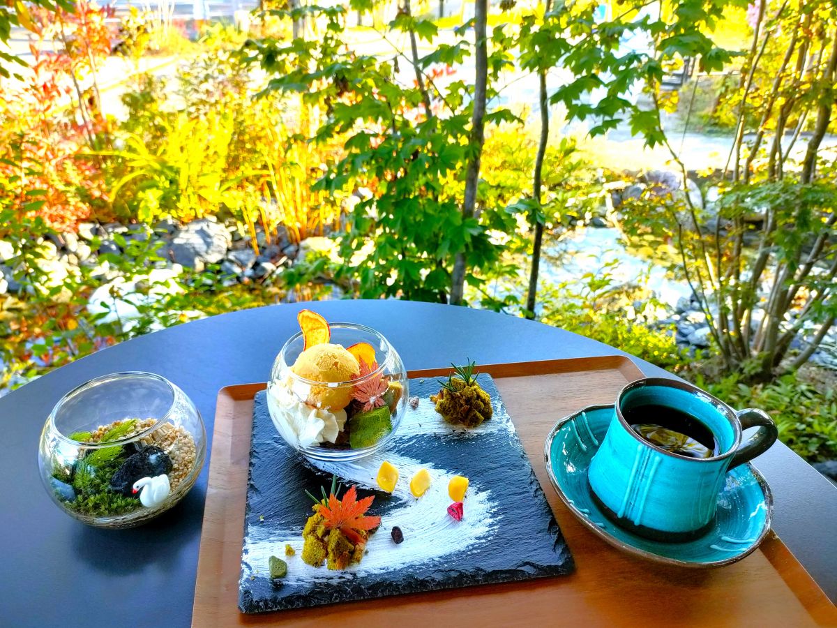 うっかりもみじも食べてしまいそうになりましたが、これは食べても大丈夫なドライもみじだそうです。秋バージョンは11月末で次のバージョンに変わり、季節ごとの自然と共に移り変わるパフェを楽しむことができます。