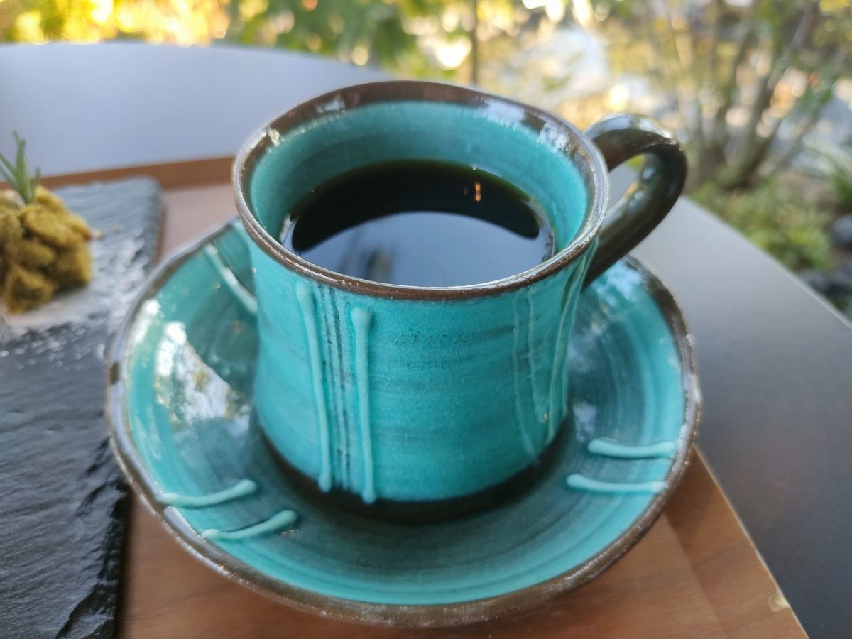 パフェと共にオリジナルブレンド「5yukuriコーヒー」を飲みながら、しばしお庭を眺めつつゆっくりとした時間を過ごしました。