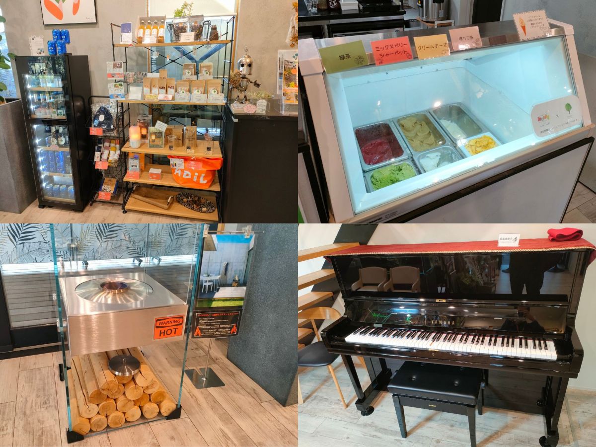 デザートとして他に阿賀野市にある神田酪農のジェラートもあれば、無農薬ハーブティーや新潟市にあるABiL (アビル)のサウナグッズなどの販売、バイオエタノール暖炉、自動演奏ピアノなど見逃したくない面白ポイントがいろいろとあります。あちこちに水槽やテラリウム、観葉植物もあってつい店内をフラフラ歩き回りたくなってしまうカフェです。