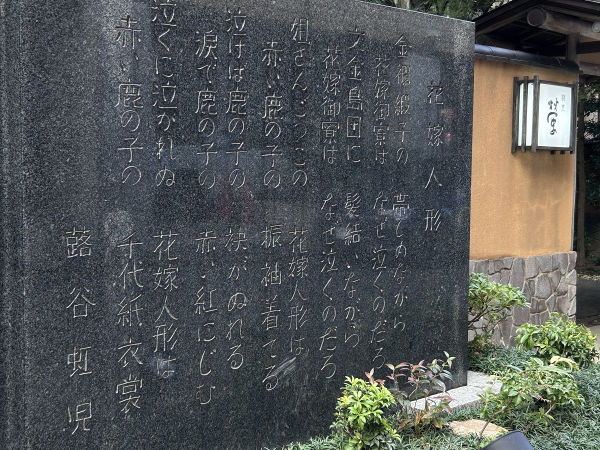 1966年(昭和41)虹児68歳、「花嫁人形」の詩碑が立つ