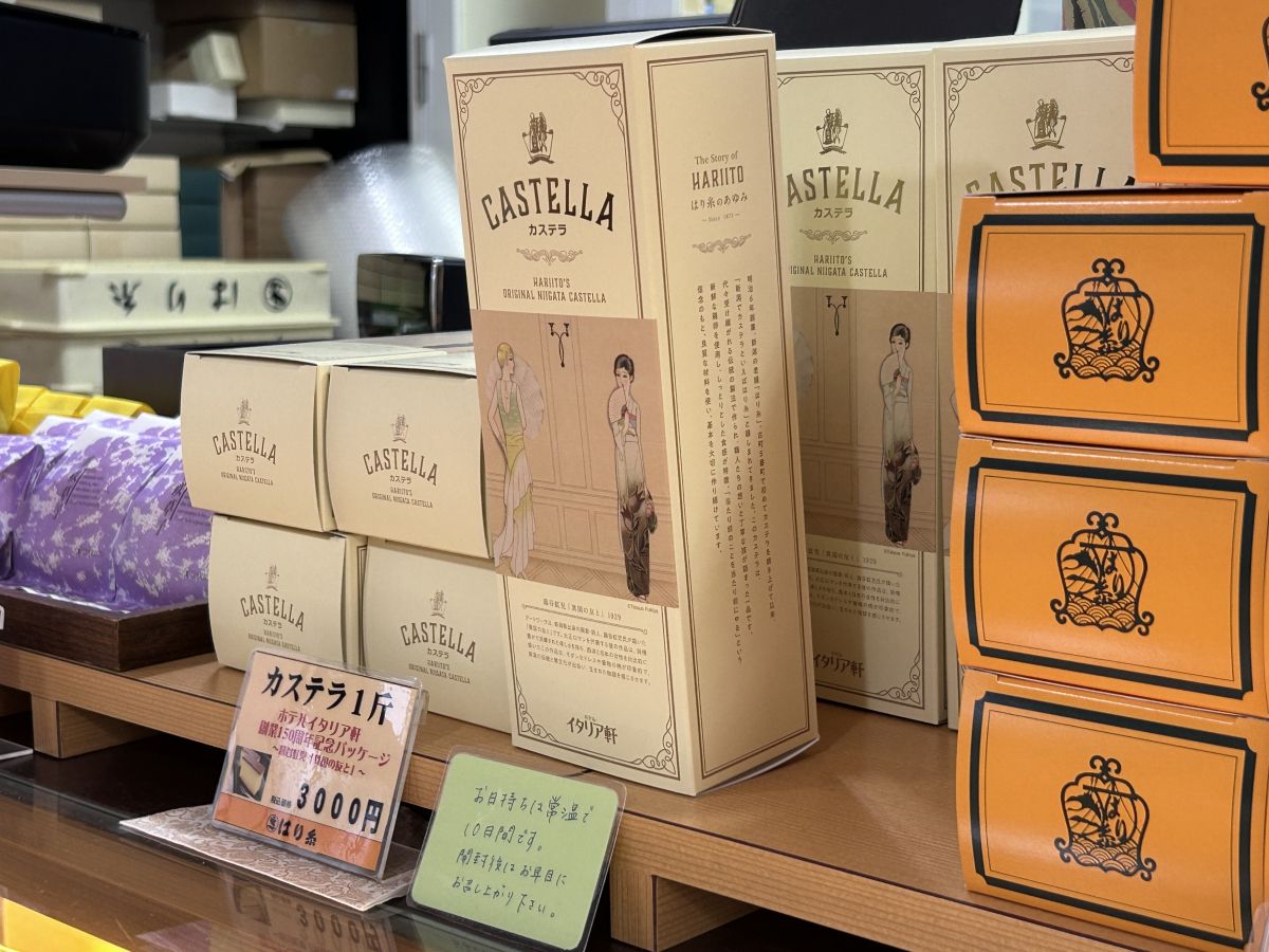 「はり糸」は、1873(明治6)年創業の老舗菓子店であり、新潟で初めてカステラを焼いた店として知られています。イタリア軒とは創業年が近く、古くからこの地域で営業が続いています。