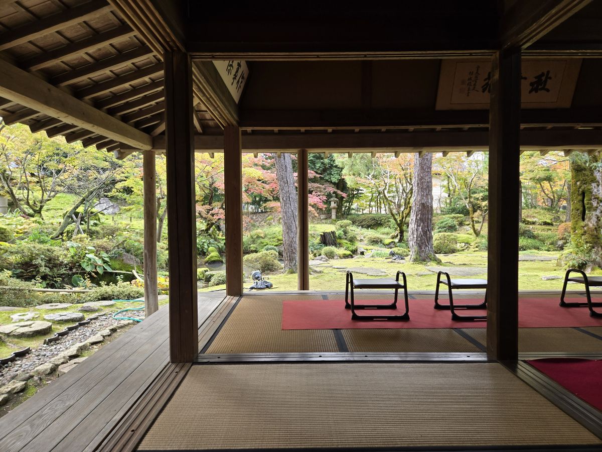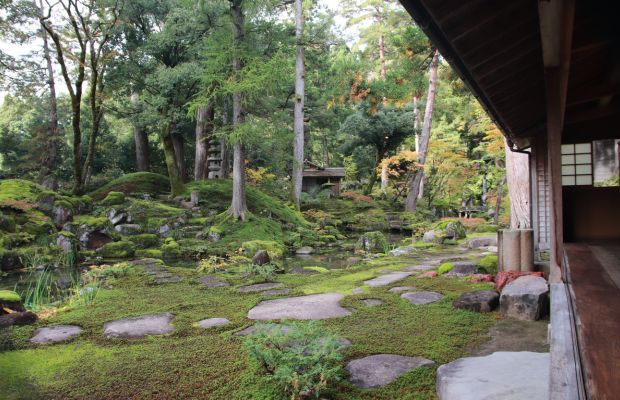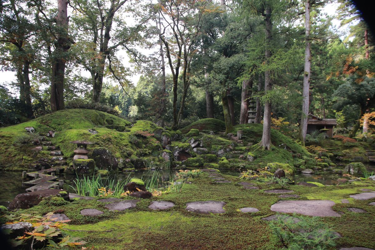 苔を守るために人の出入りまでも丁寧に考え抜かれ、その心づかいがこの穏やかな美しさを支えています。