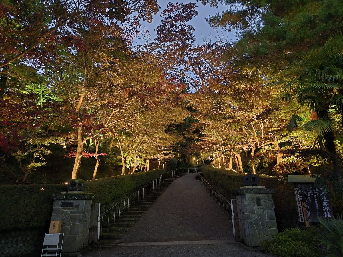 期間中は隣接する木村茶道美術館も夜間特別開館され、灯りに照らされた紅葉を眺めながら、茶席で一服を楽しむこともできます。