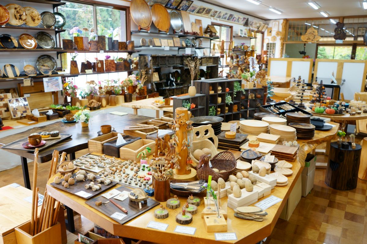 こちらで作っている木工品がずらり。圧巻です。