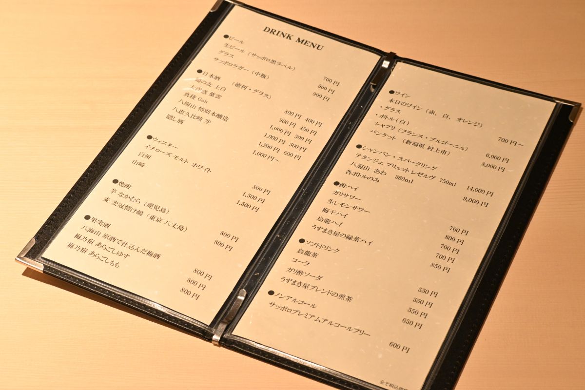 メニューは、基本的にはコースのみ。各種アルコールも充実の品揃えです。