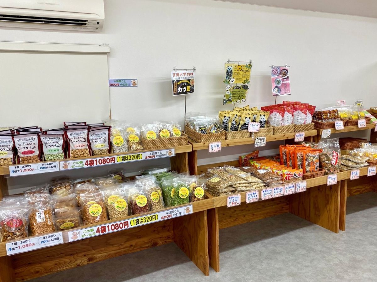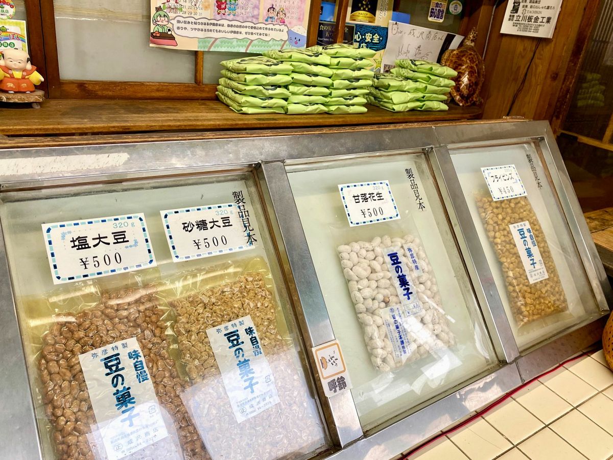 店内には市販品やお買得品など、たくさんの豆菓子が所狭しと置かれています。