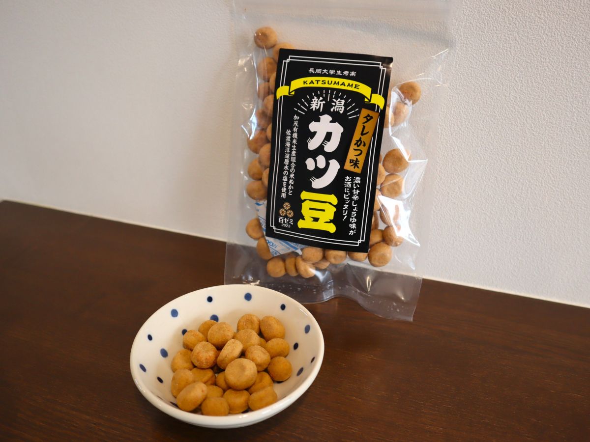 長岡大学の学生とともに考案した、 新潟のB級グルメ「タレカツ」味に仕上げた「カツ豆」。