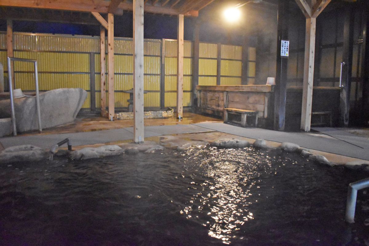 前日も、もちろん入浴したのですが、ためたばかりの温泉は格別に気持ちいい。宿泊者だけなので人数も少なく、シンとした中で、お湯が流れ落ちる音やコポコポと泡立つ音を聞いているのも楽しい。