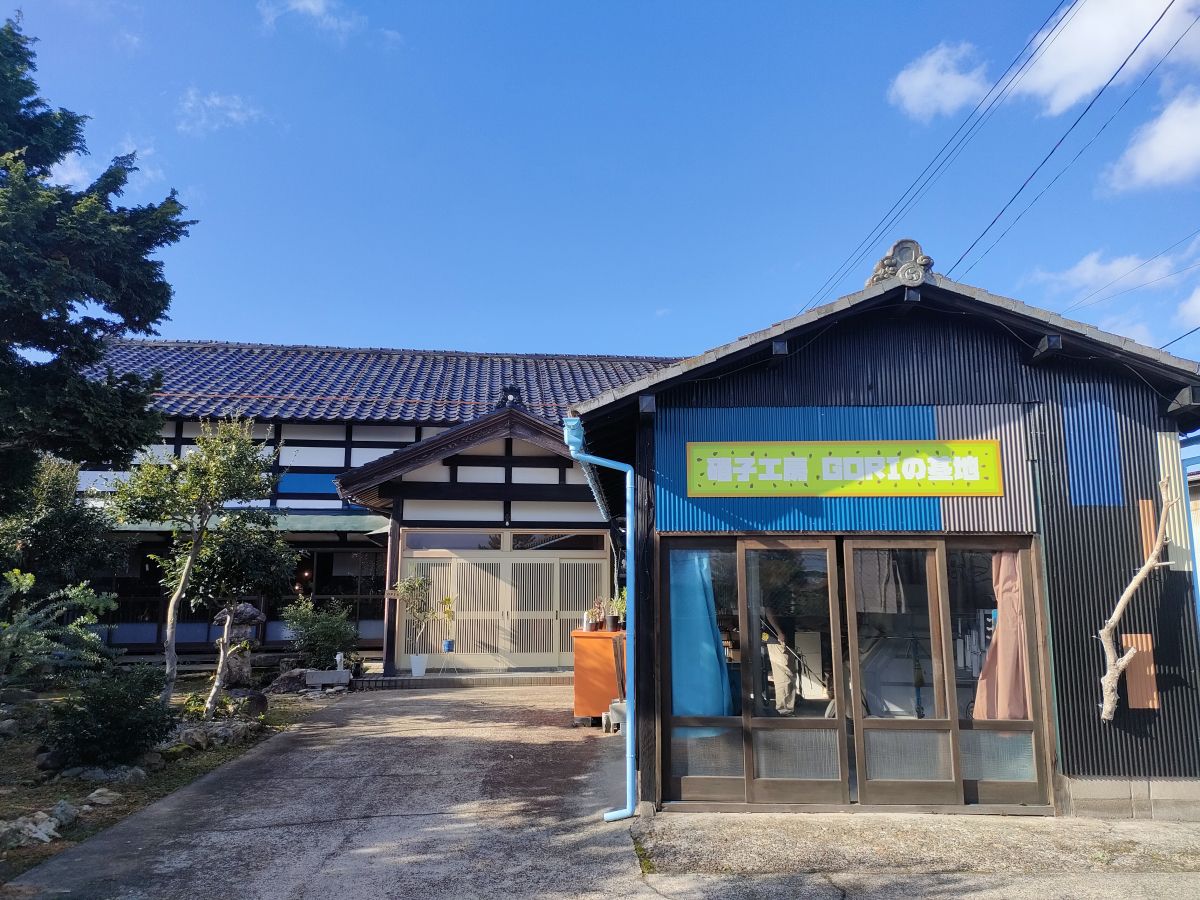 昔ながらの住宅地の中にある「硝子工房GORIの基地」は、リフォームした古民家にある工房と展示場です。