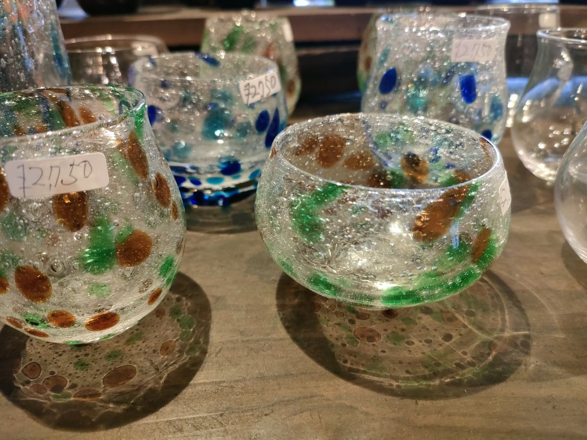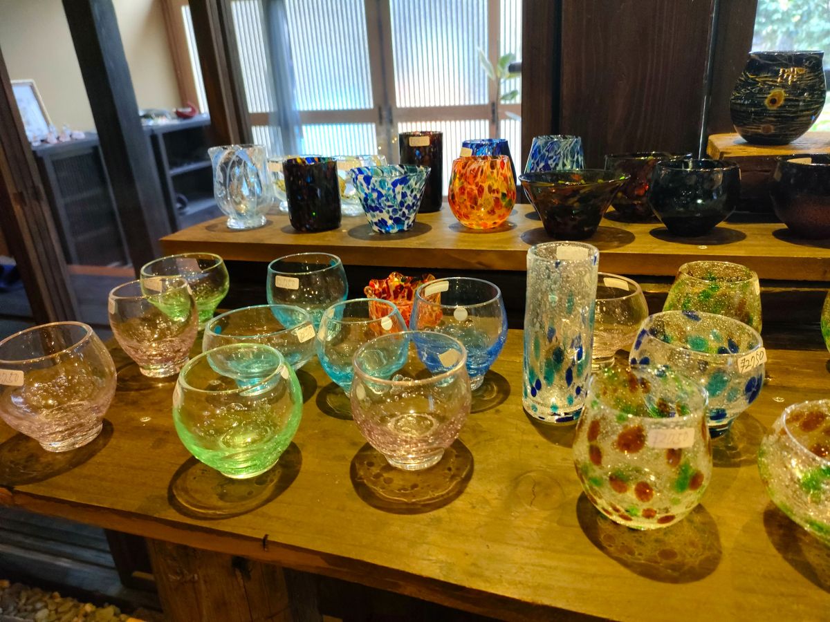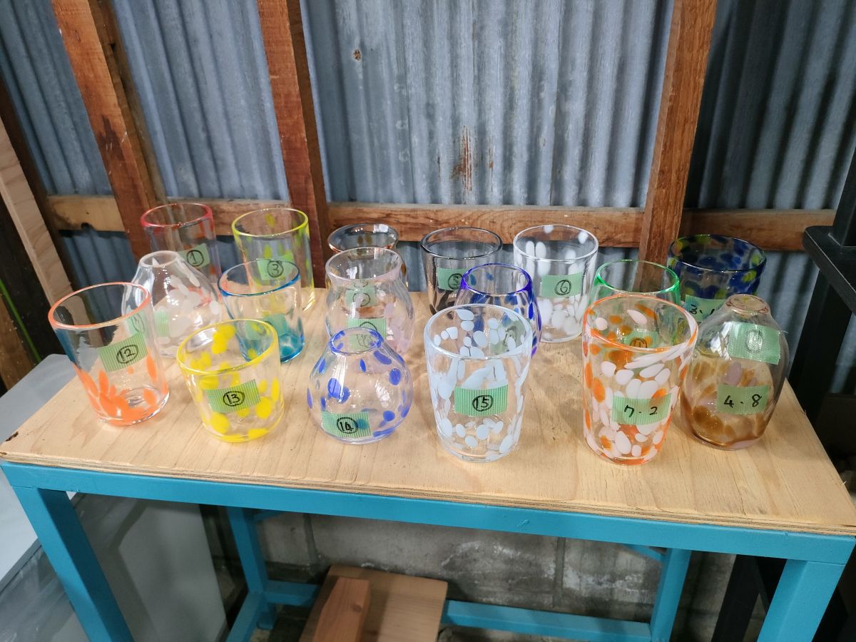 グラス、花瓶、ぐい呑み、そばちょこなどが作れ、こんな形の作品にしたいと希望を言えば、できる範囲で応じてもらえるそうです。