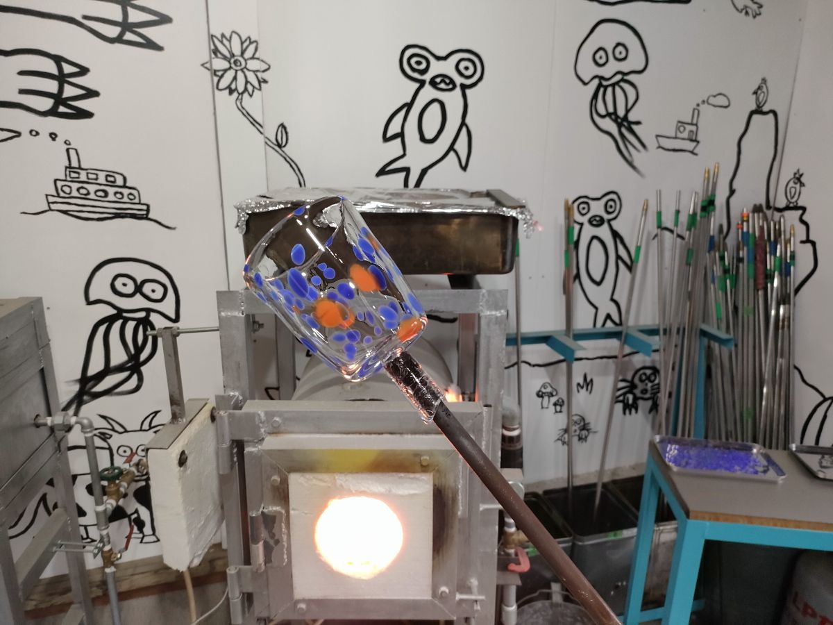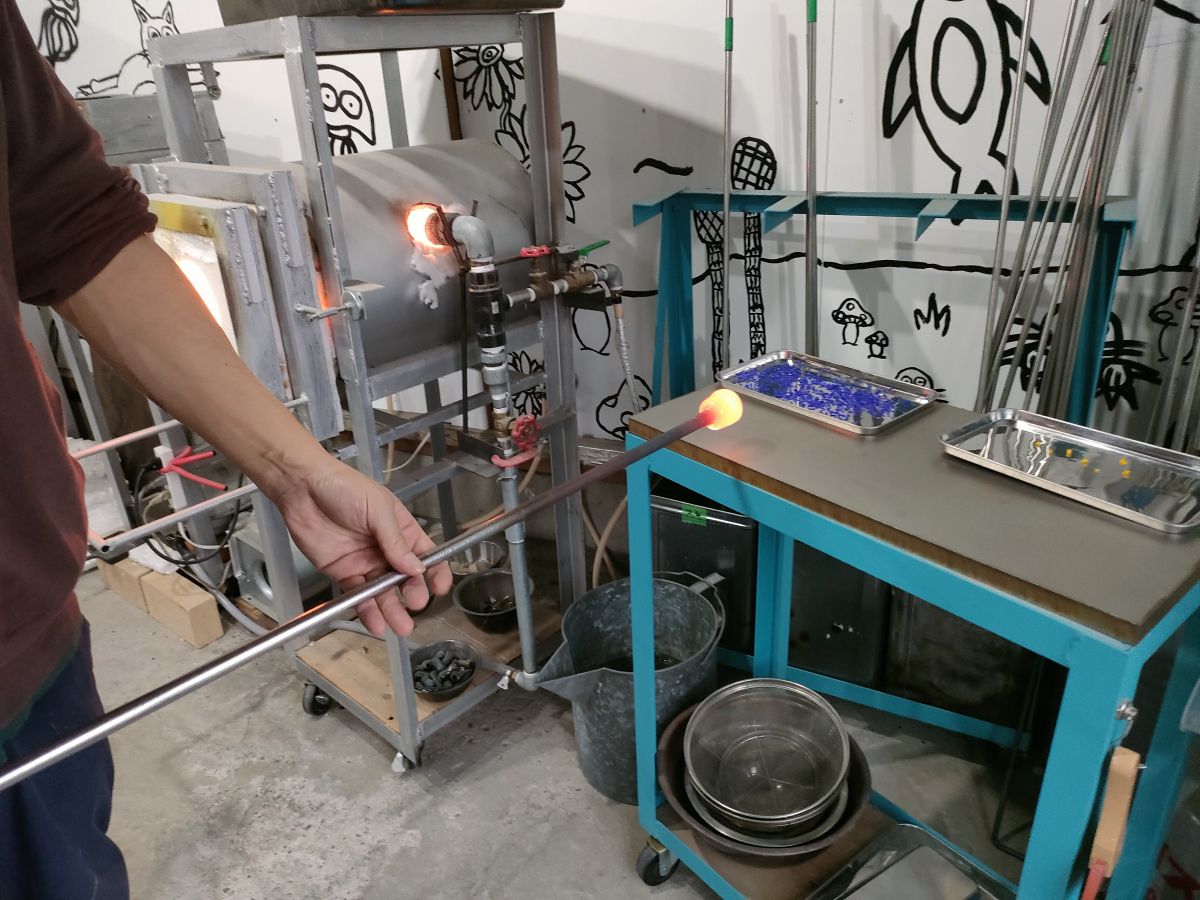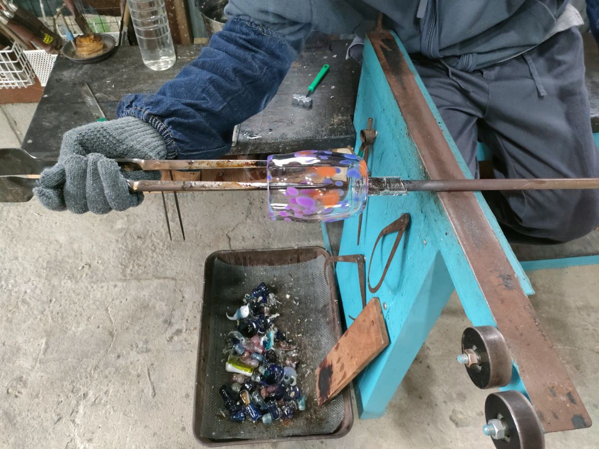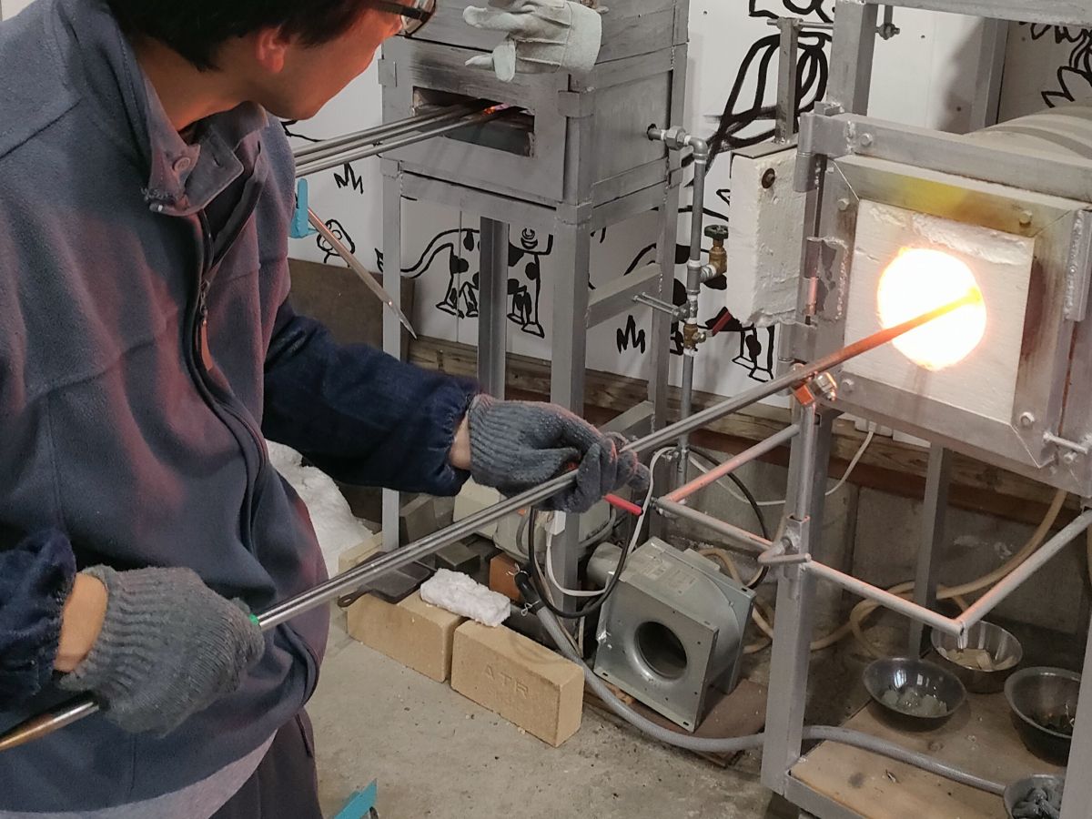 体験を教えてくれたガラス作家の藤田さんは、元々ガラスの空き瓶や100円ショップのガラス製品などを集めるのが好きで、そこから東京の大学でガラス工芸について学び、卒業後はガラス作家さんの工房で修行をされていたそうです。