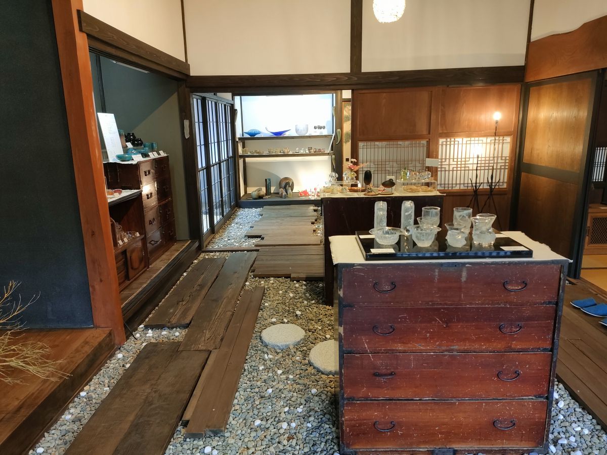 古民家に飾られることでさらに映えるガラス展示