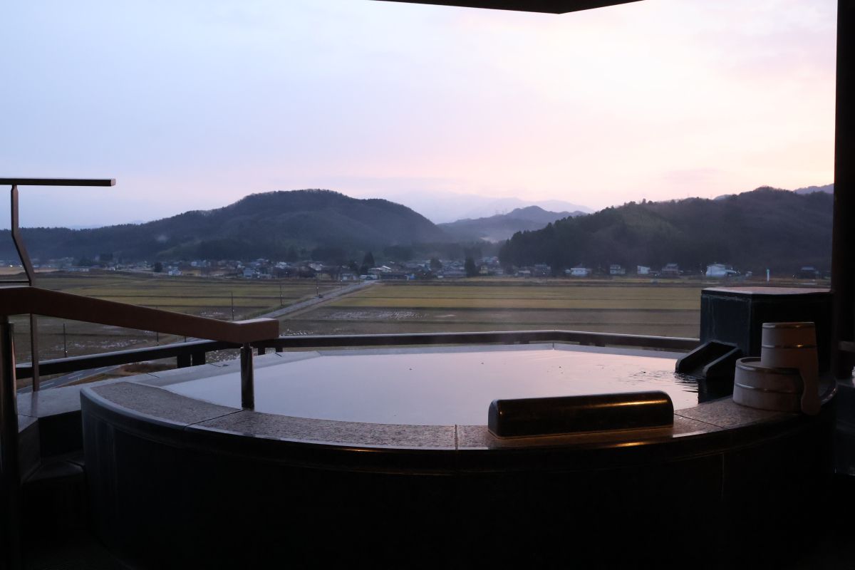 目の前に広がる田園風景と朝焼けがとっても美しく、冷えて澄んだ空気も心地よくて、ついつい長湯になってしまいました。個人的にはあまり気にならなかったのですが、開放的な見晴らしなので気になる方は早朝か夜、天気が良ければ星空を見ながら……なんて入り方も素敵かも。