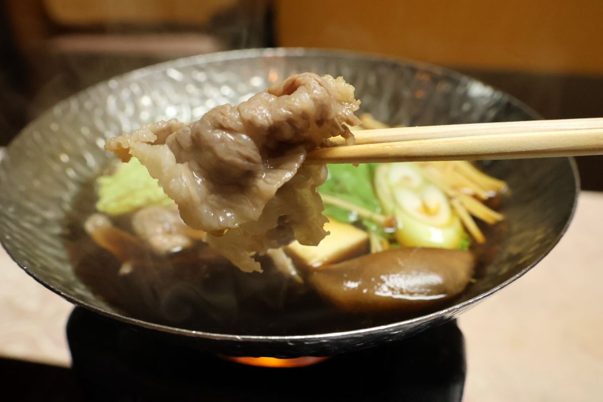 こちらは新発田牛すき焼き鍋。見てください、この繊細な霜降り肉を……。
