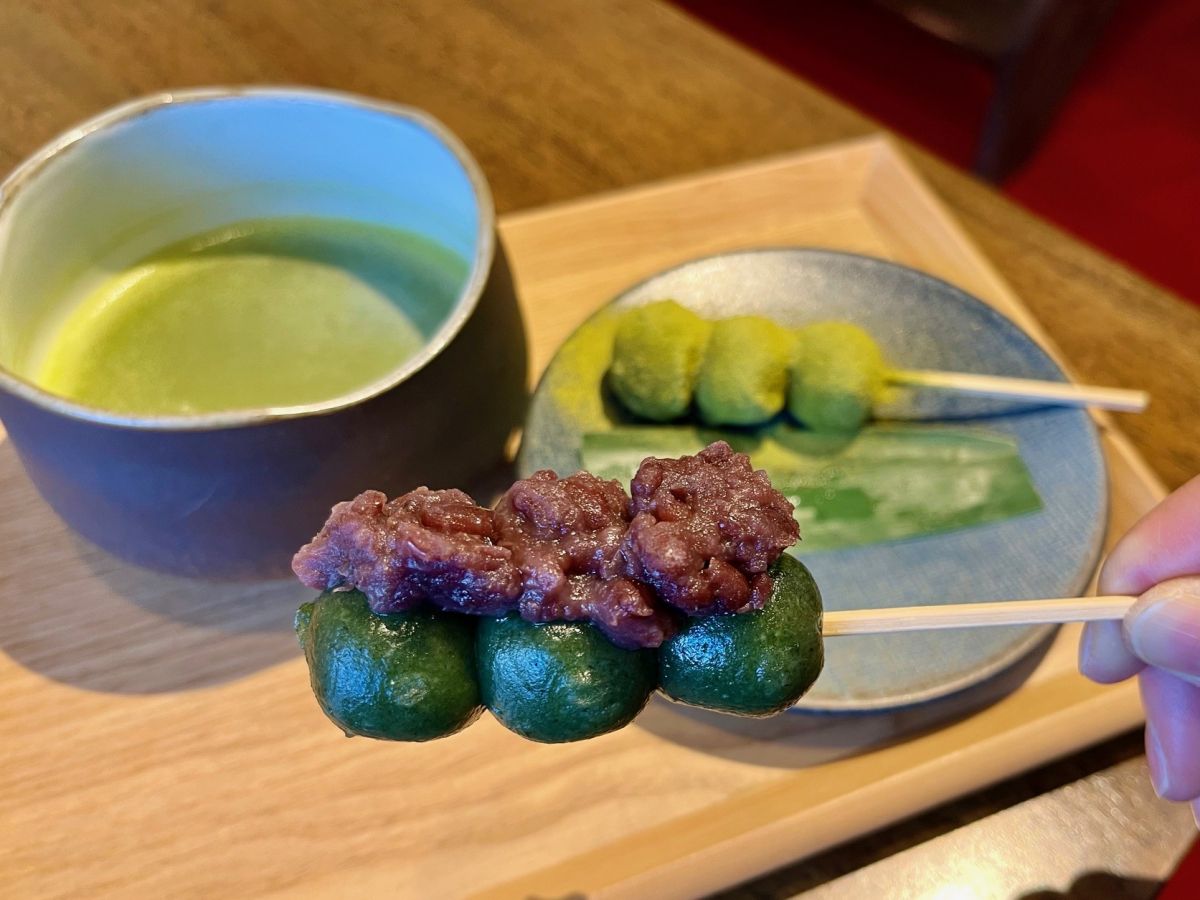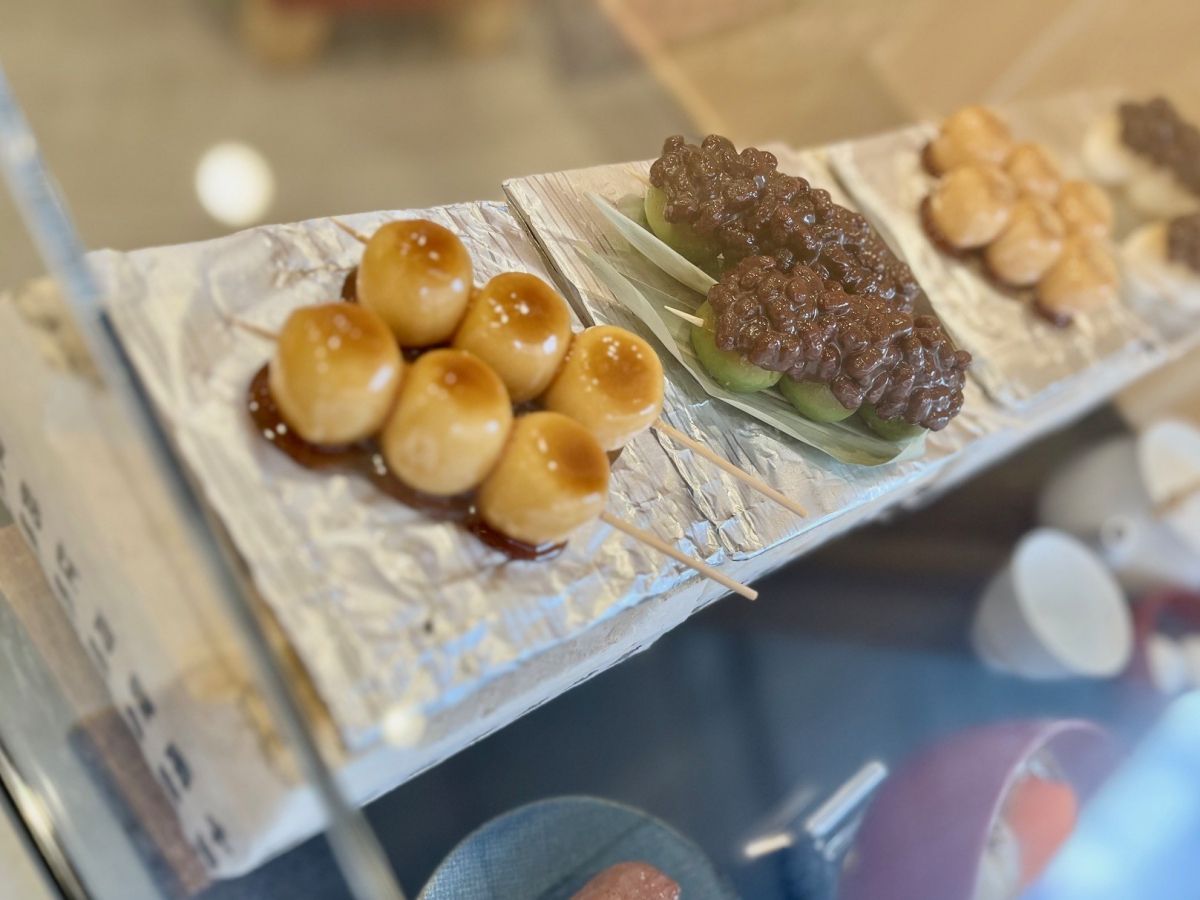 「新潟 笹串だんご」をはじめ、「白山 しょうゆみたらし」、「古町 抹茶きなこ」、「京風 黒蜜きなこ」、「北海道産あずき」といった5種をラインナップ。1本からはもちろん、「おだんごセット」(820円)として好みの団子2種と抹茶を一緒に味わえます。