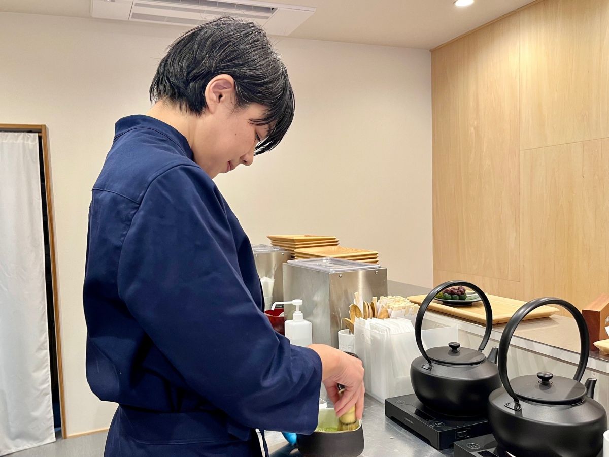 宇治抹茶(単品価格は400円)は提供前にスタッフ・清水さんが点ててくださいます。