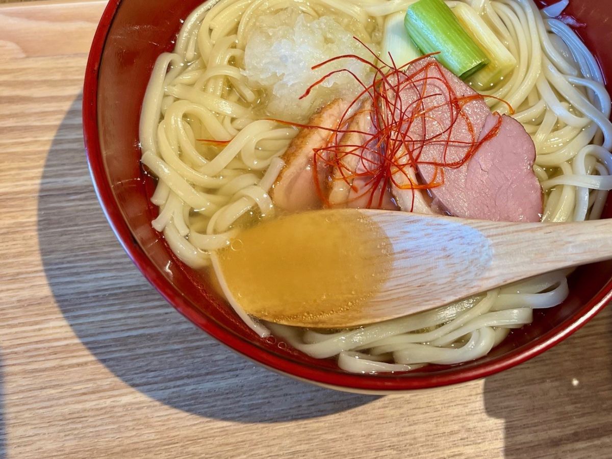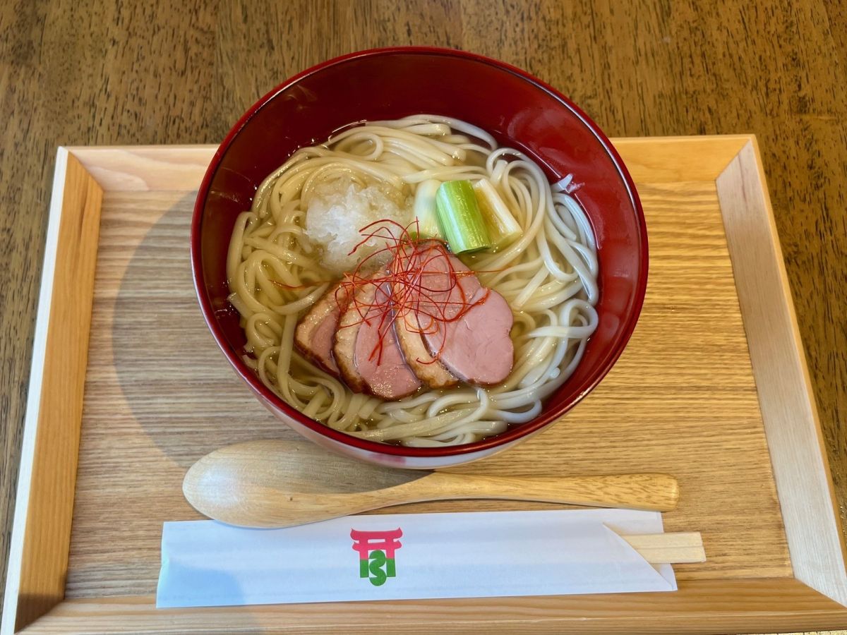 まずはスープをひと口…。昆布、カツオ節、シイタケでとったという風味豊かな上品なだしが体中に染みわたります。「おだんごセット」に続き…のど越しのよい麺もおいしくいただきました。