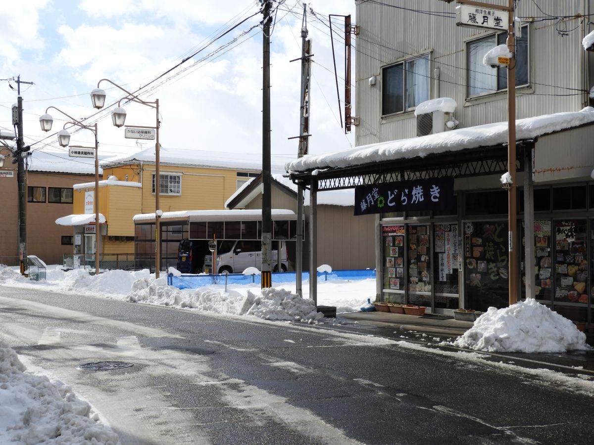新潟市街から行くと国道8号線を三条方面に向かって…「新潟ふるさと村」を過ぎてすぐ、新田町の信号から左に入ると大野町の商店街に入ります。