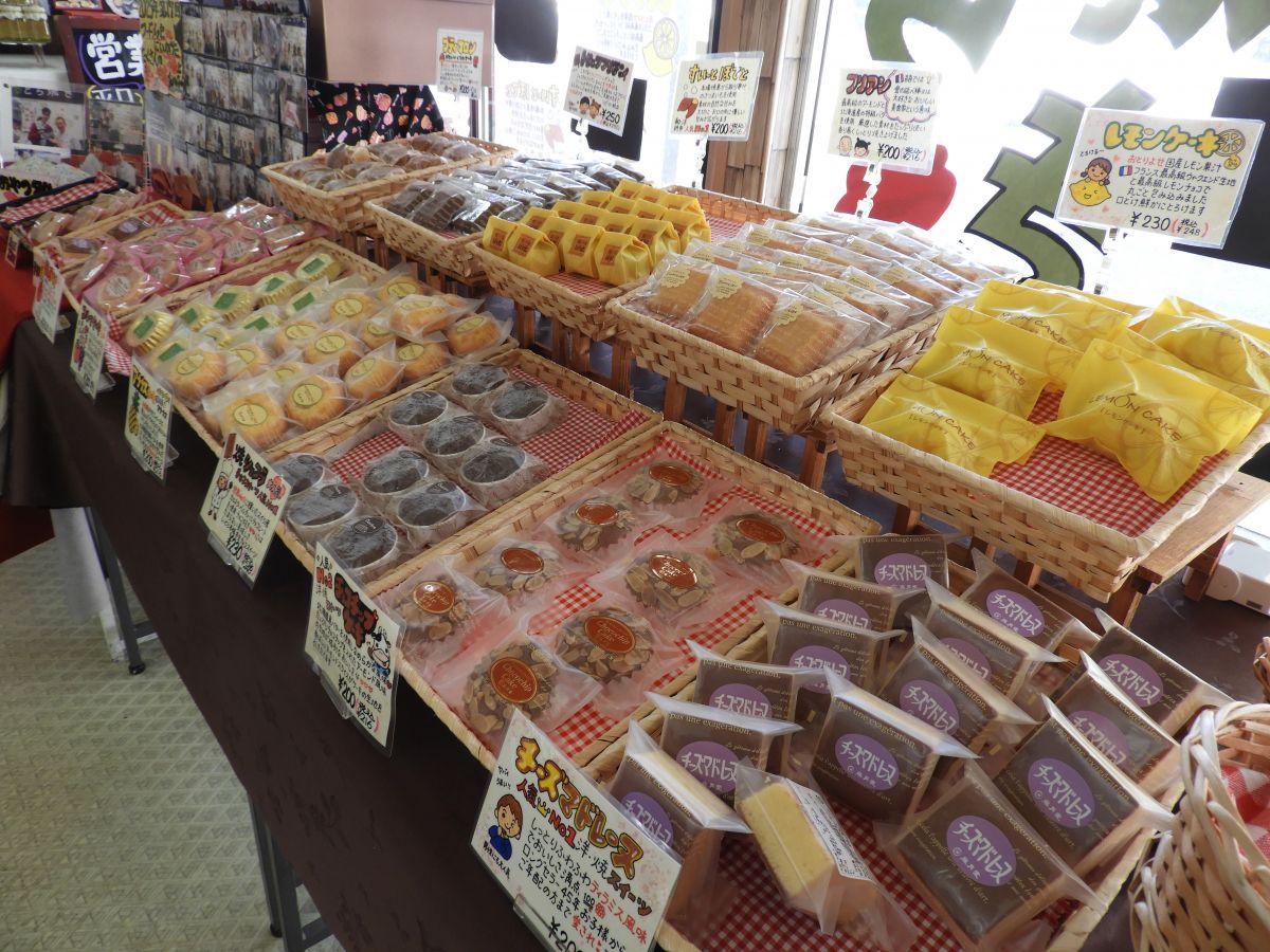 店内いっぱいに並べられた和洋菓子(約30種ほどが並びます)