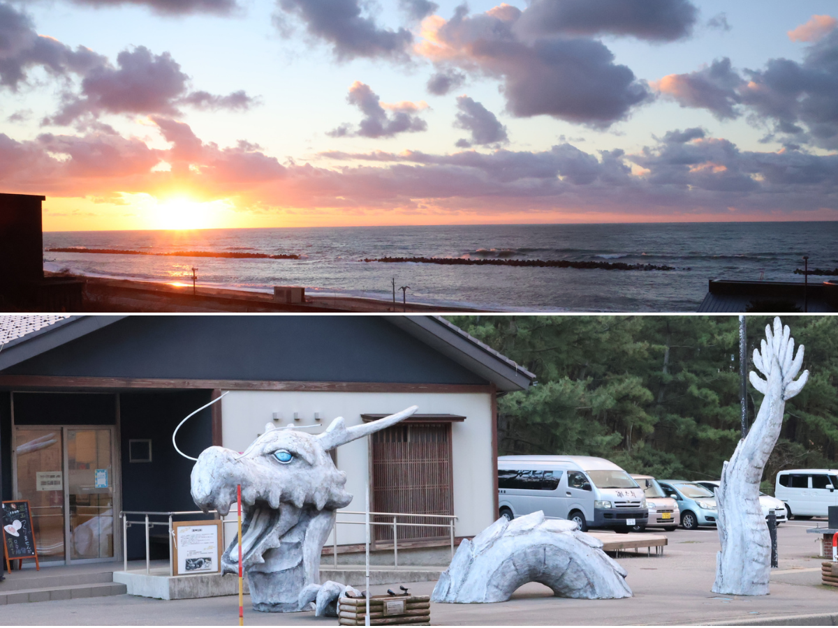 目の前の日本海で水揚げされた新鮮な海の幸と絶品村上牛