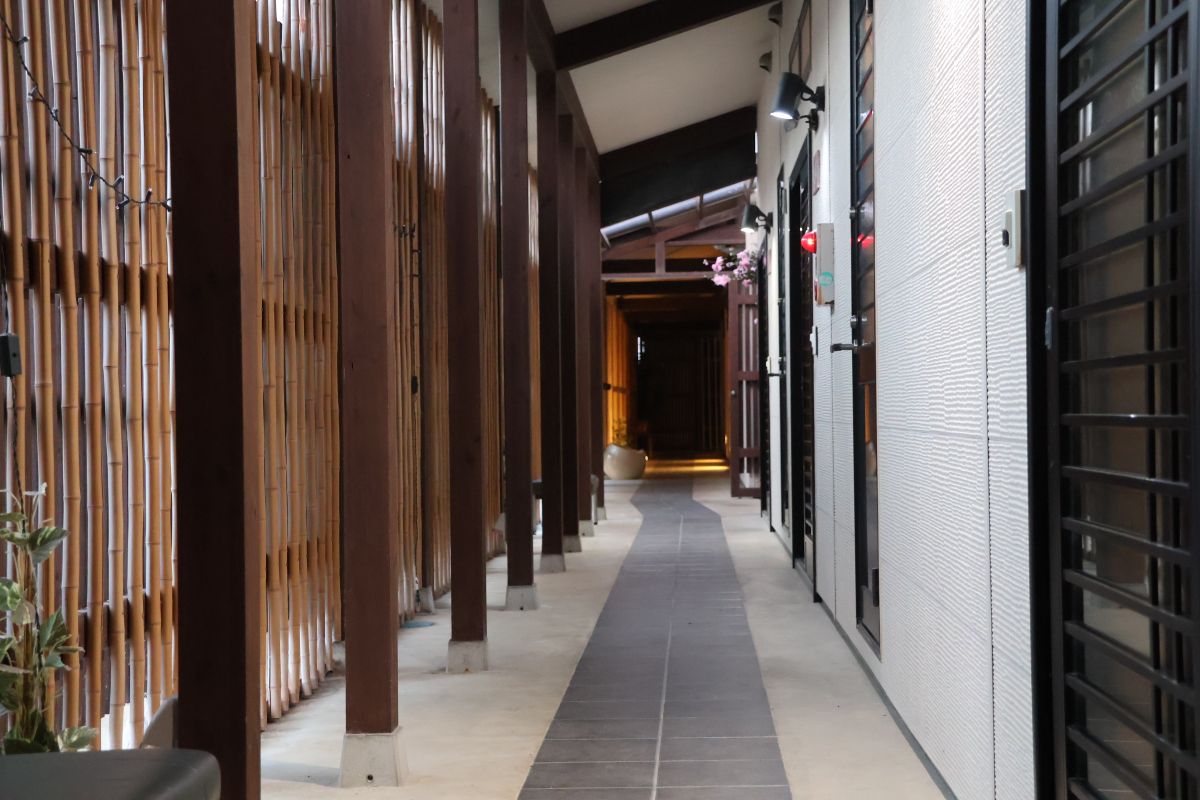 本館から別邸までは、屋根付の回廊を使用します。ロビーからは少し歩きますが、その道のりも特別感があっていい感じ。