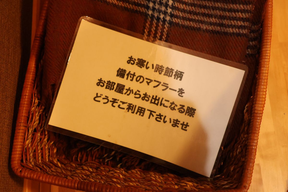 玄関に準備されていたマフラー。こういう気遣いやおもてなしにホッとします。