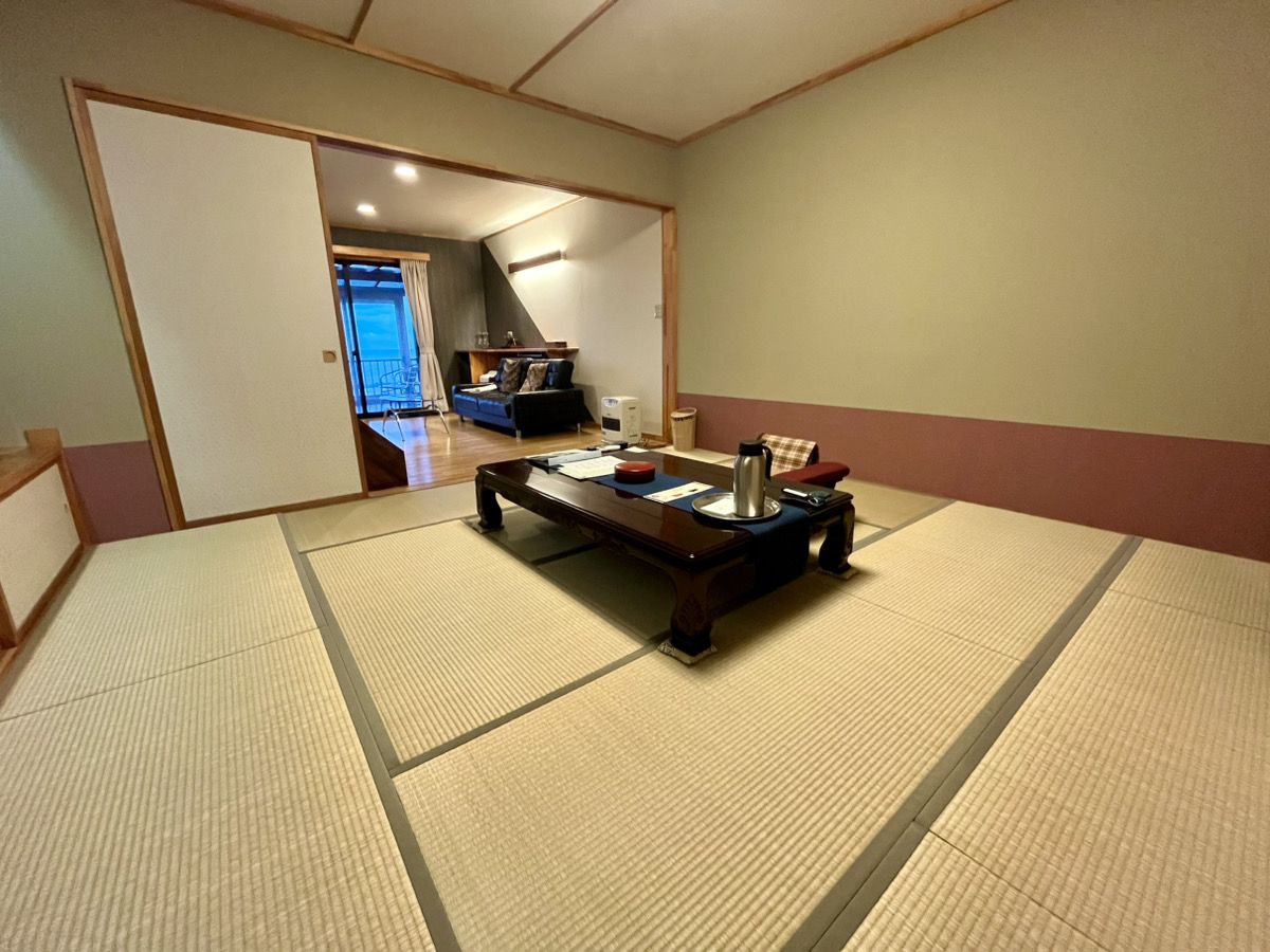 1階は和室のお部屋とフリースペース。奥に露天風呂があります。