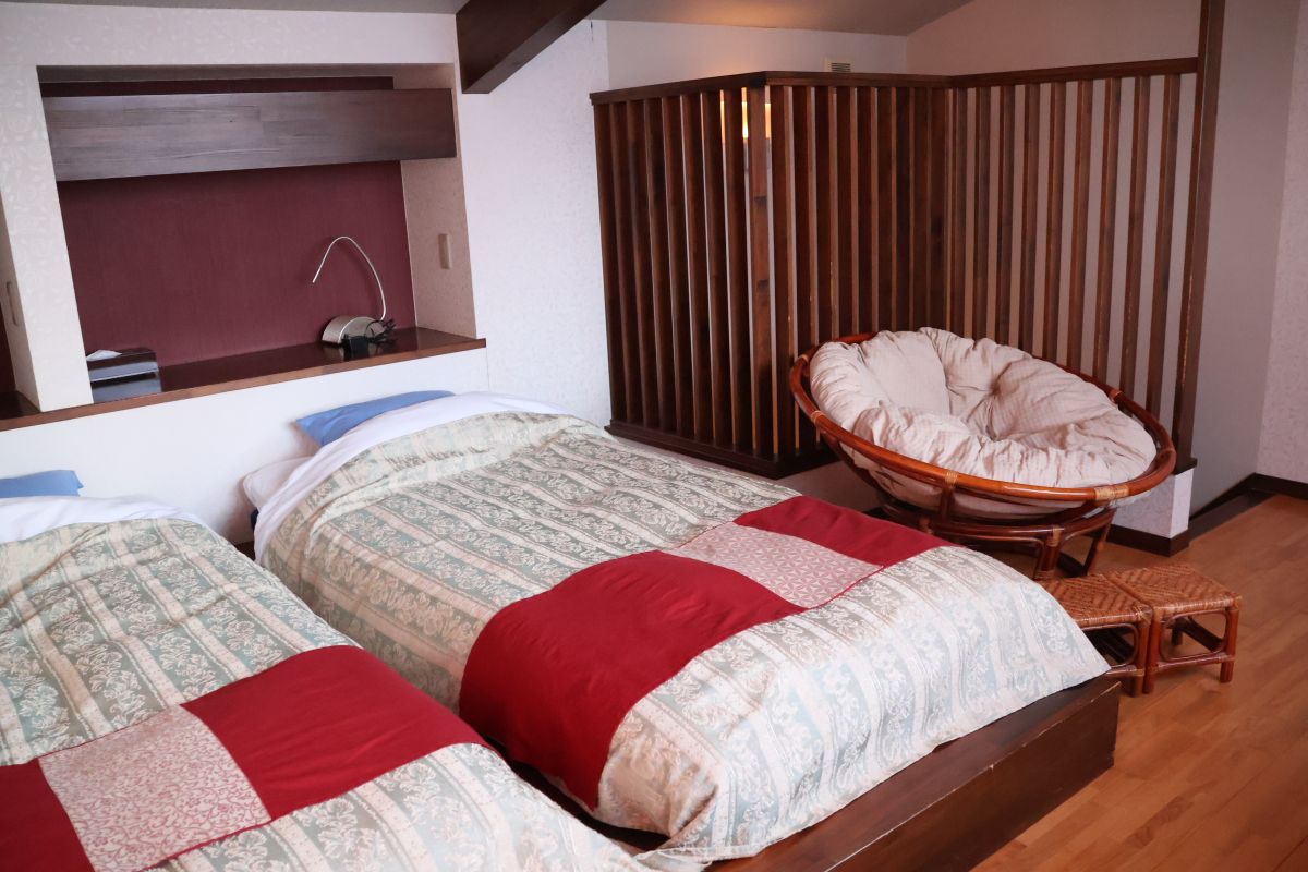 2階は寝室スペースで、向かいにはカウンターがありました。カウンターの窓から見える海の様子が素晴らしいのですが、この写真は後ほど。