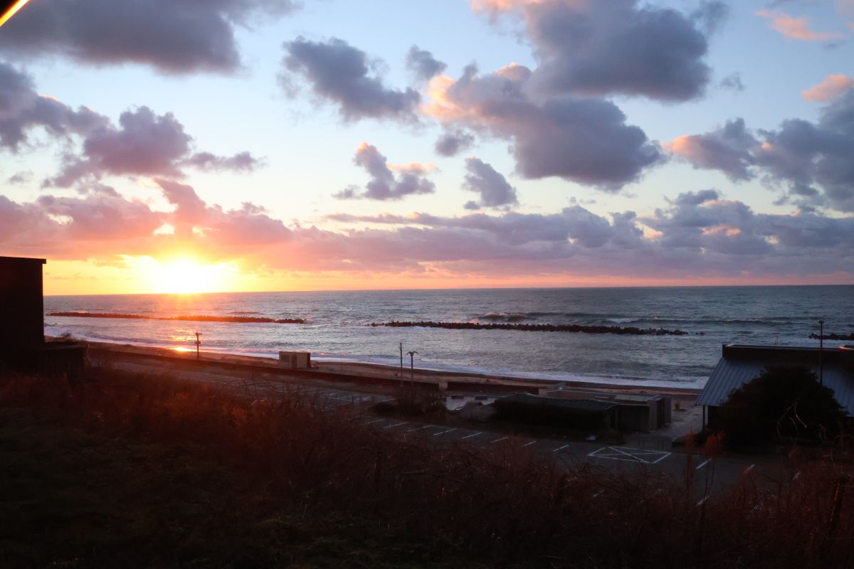 早めに就寝し、起きてカウンターのカーテンを開けると美しい朝焼けが広がっていました。